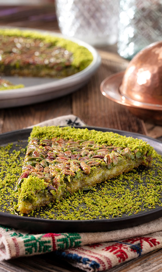 Domates, salatalık, biber, yeşil soğan, maydanoz, taze nane ve ceviz ile servis edilir.