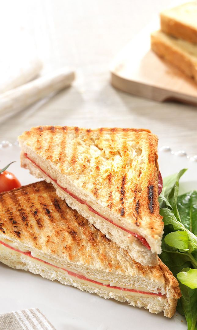 Ton balığı, kaşar, domates, biber ve karamelize soğan ile.